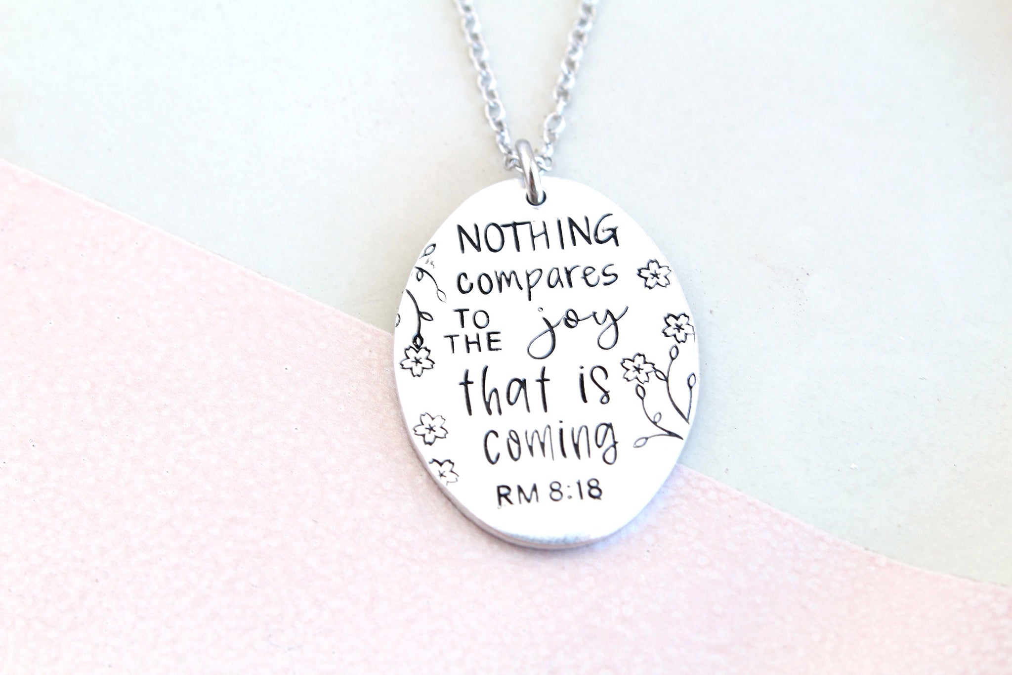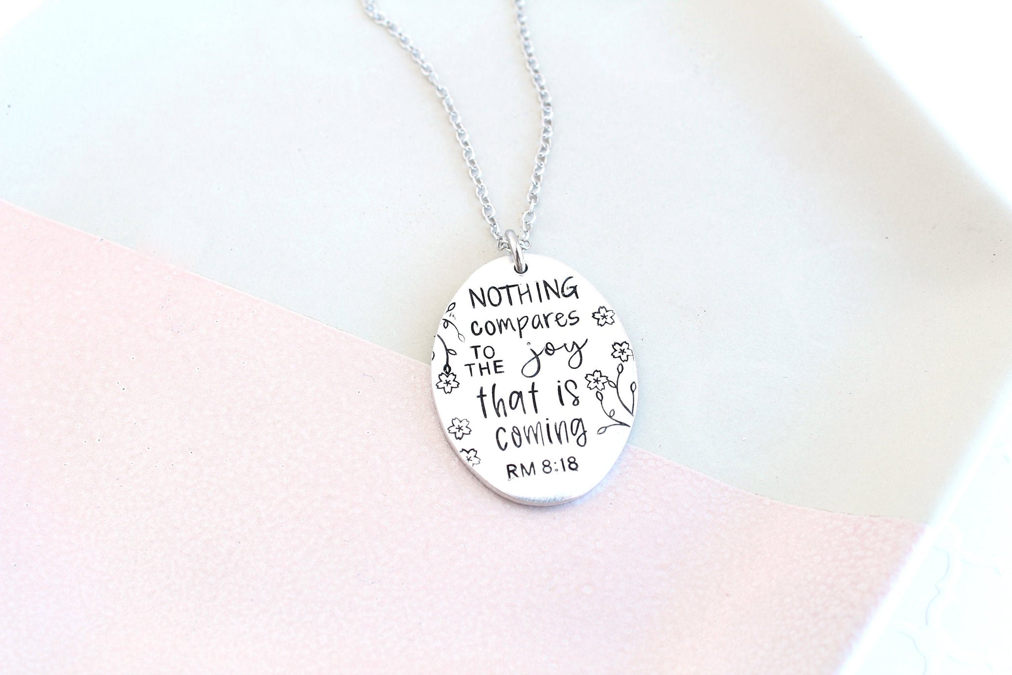 Romans 8:18 Bible Verse Oval Necklace