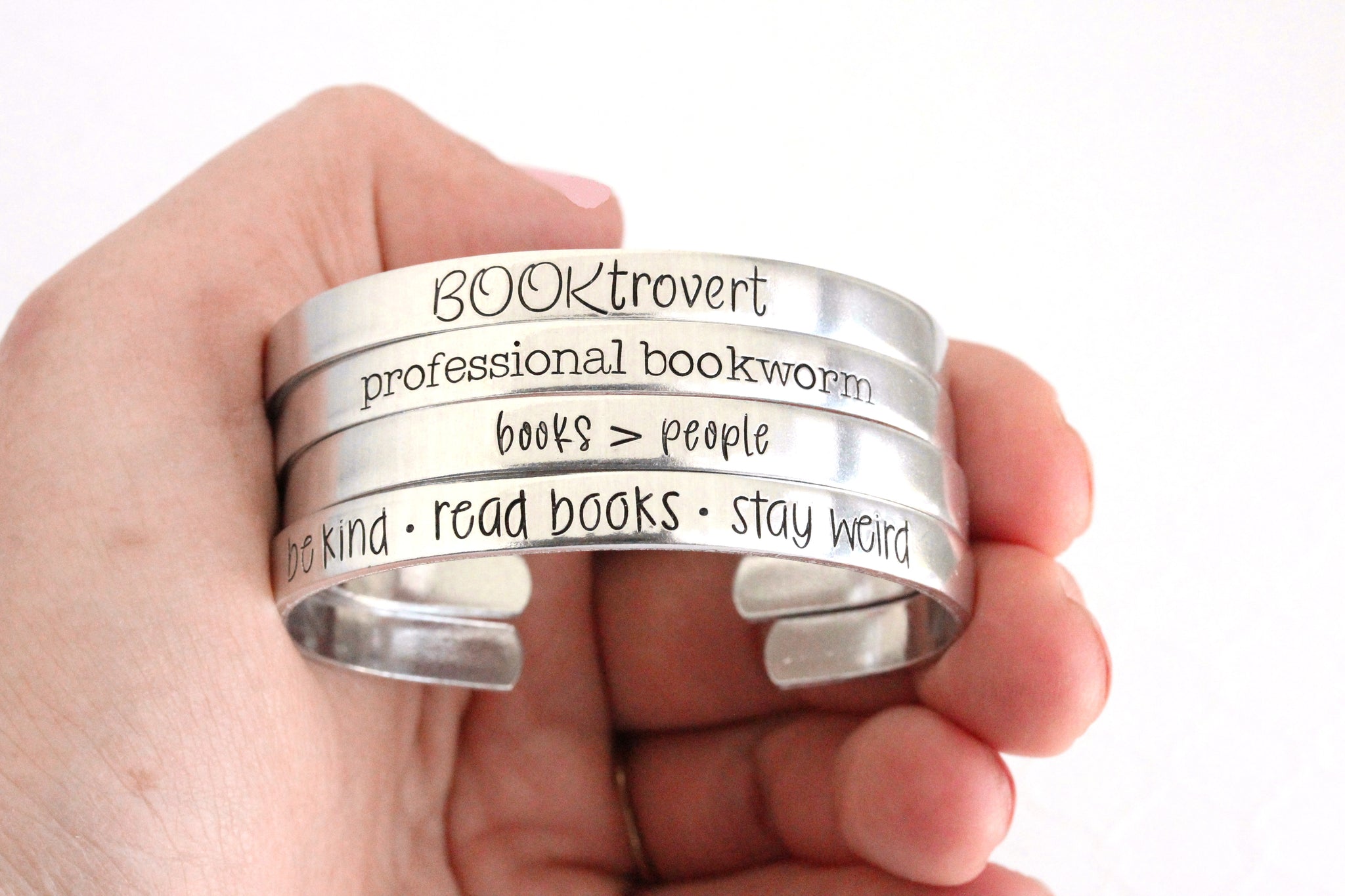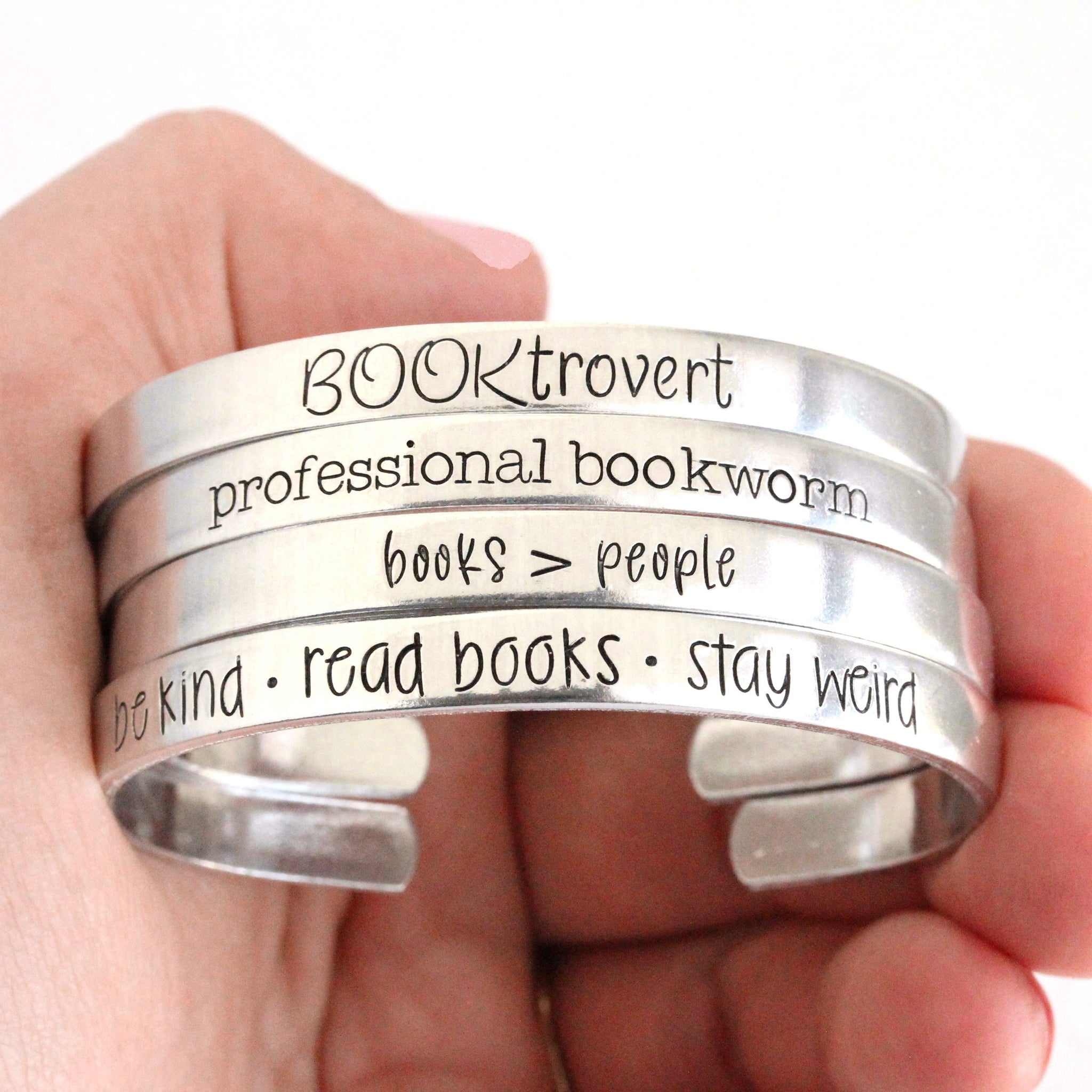Bookworms will love these cute cuff bracelets with fun phrases! They're perfect gift for friends, book clubs, birthdays, and more.