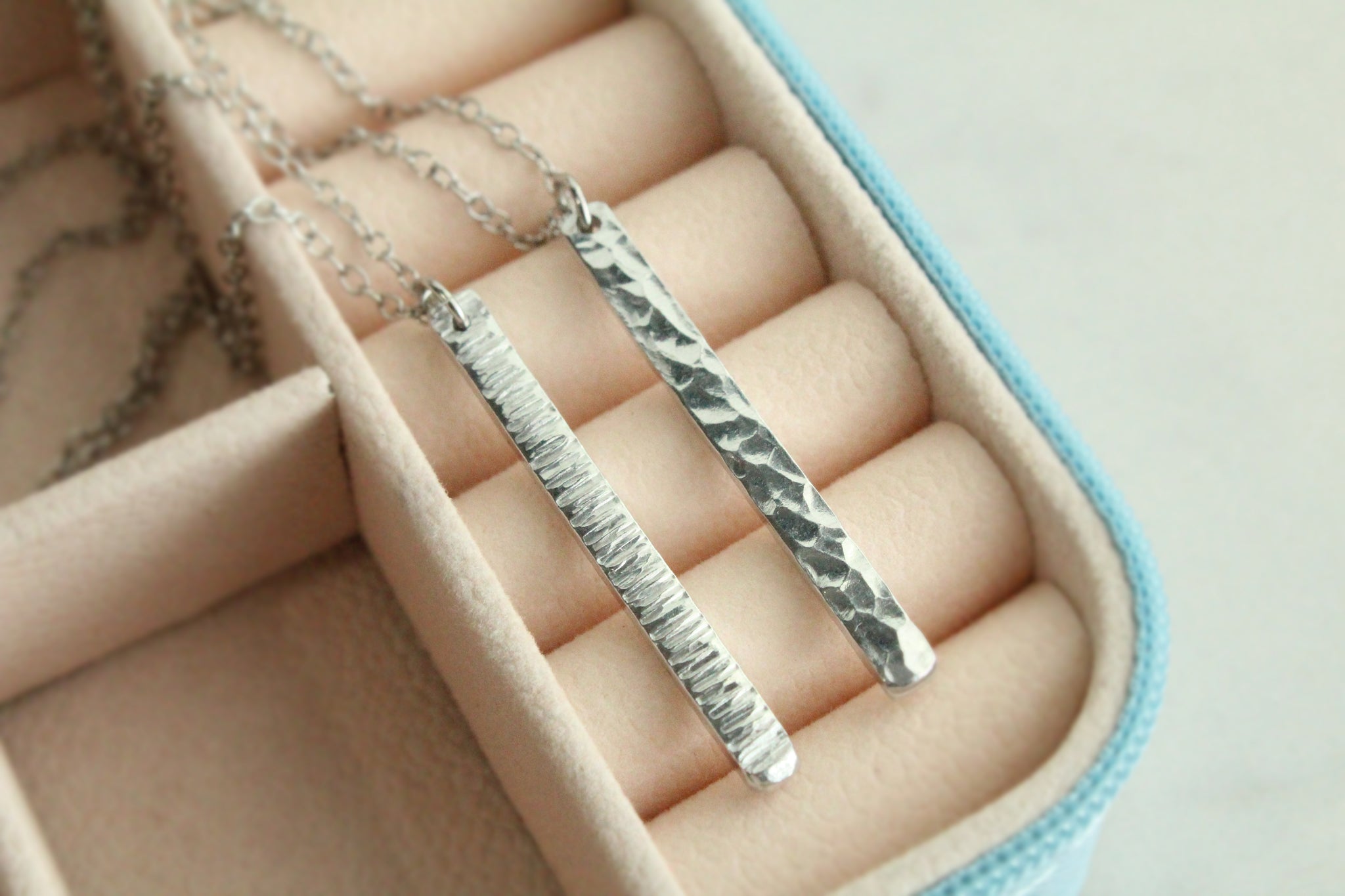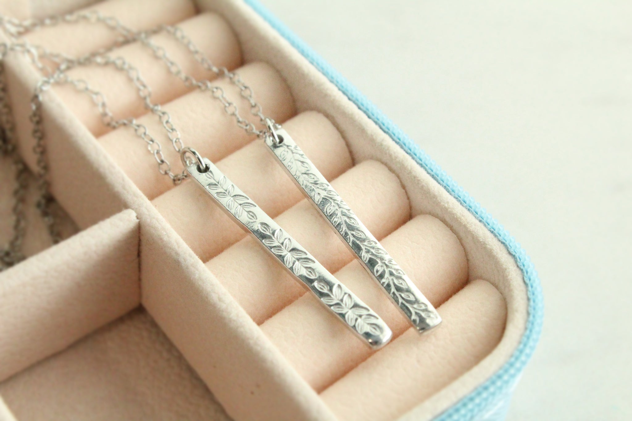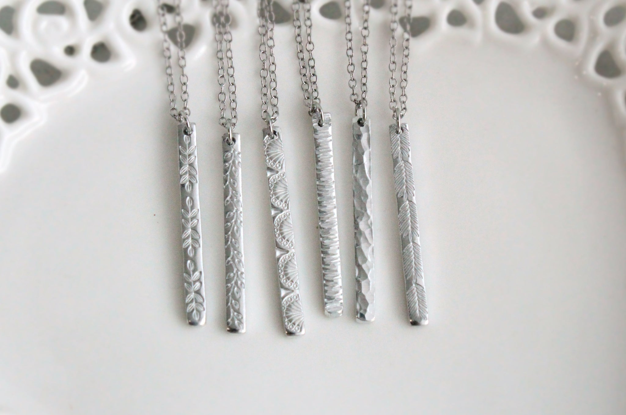 Embrace simplicity with a minimalist necklace that is the perfect plus one to your outfit. Delicate yet eye-catching, this accessory adds just enough shine and sparkle to compliment an understated look without stealing the show. There are six designs to choose from, inspired by 10th Floor Treasures' fan favorite earrings. The lightweight pendants measure 1.5" x 1/8", are made of aluminum which is hypoallergenic and non-tarnish, and hang from a sturdy stainless steel clasp and chain.