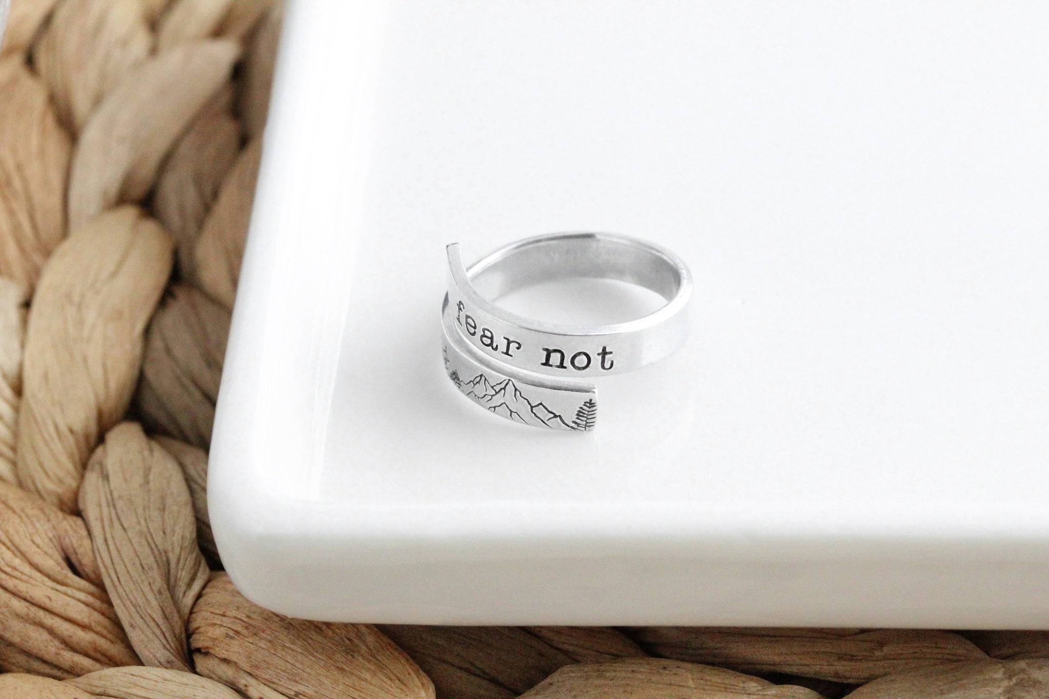 Forest Mountain Wrap Ring With Text