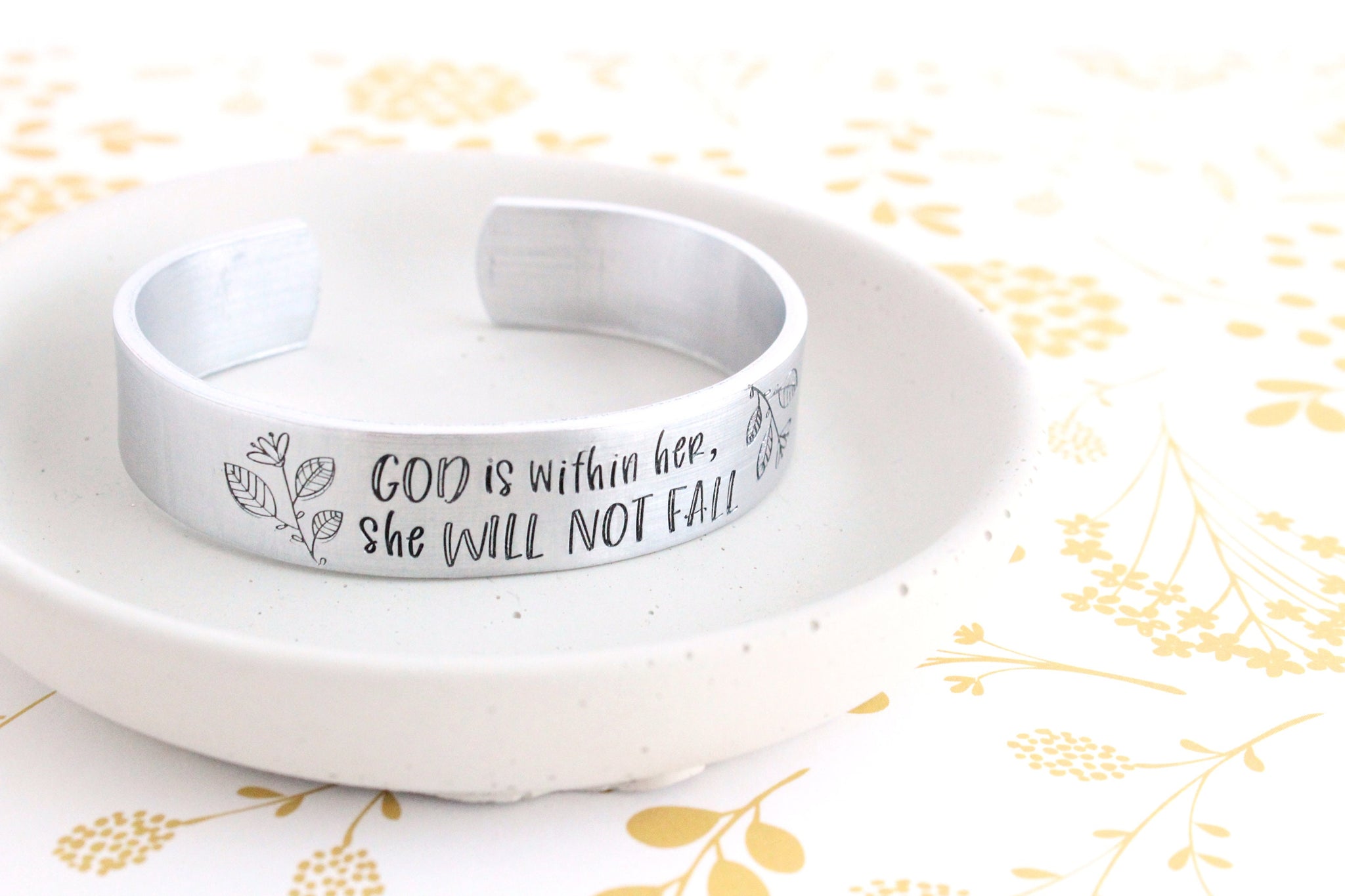 God Is Within Her She Will Not Fall Wide Cuff Bracelete