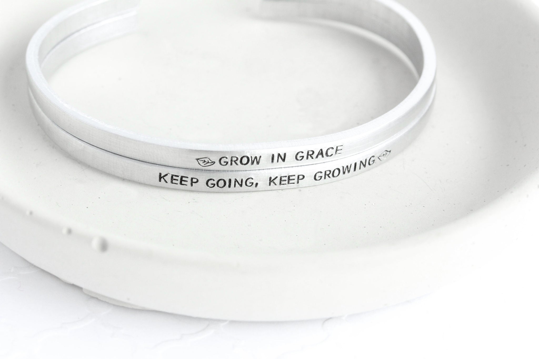 Keep going and keep growing, and grow in grace with these dainty cuff bracelets.