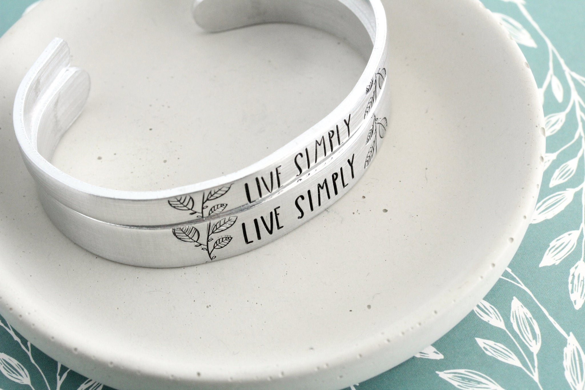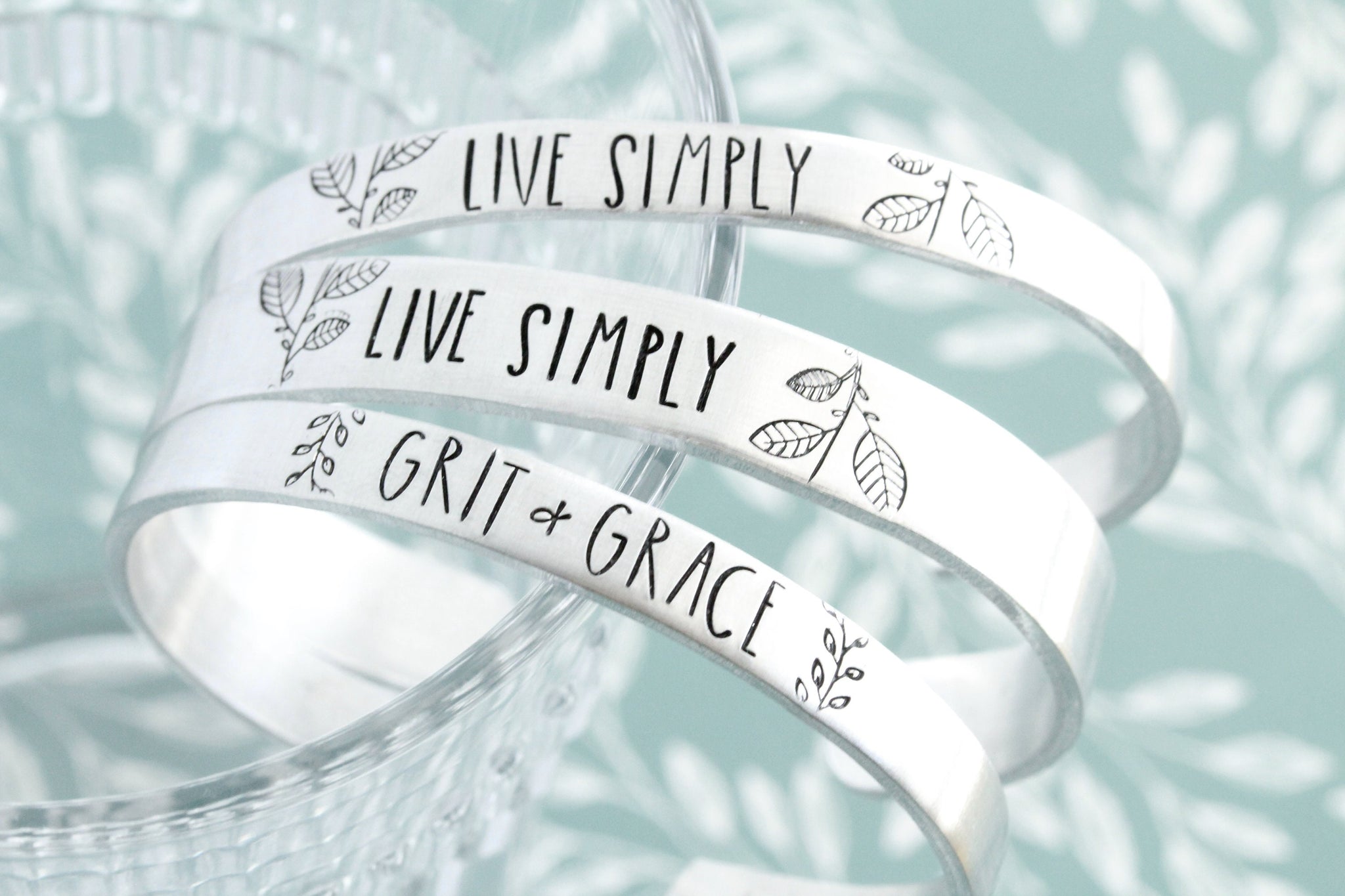 These are not machine engraved; instead, each letter and design is lined up one-by-one and hammered into the metal - all by hand. For this reason, there may be slight differences in the spacing, depth, and alignment. These are characteristics that add to the charm of being handmade; do not expect machine perfection. Please be aware of turn-around and shipping times. Rush options available at checkout.