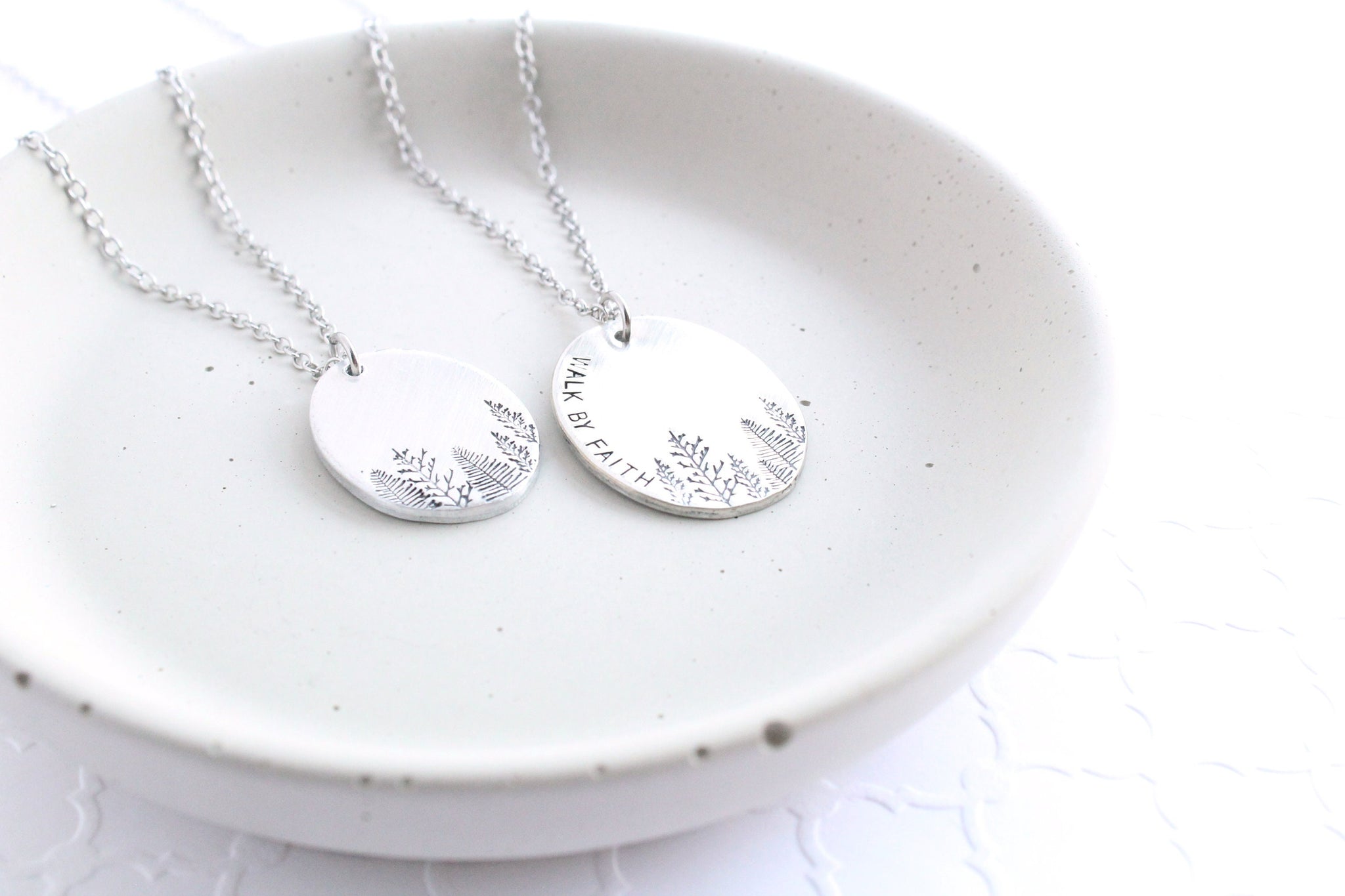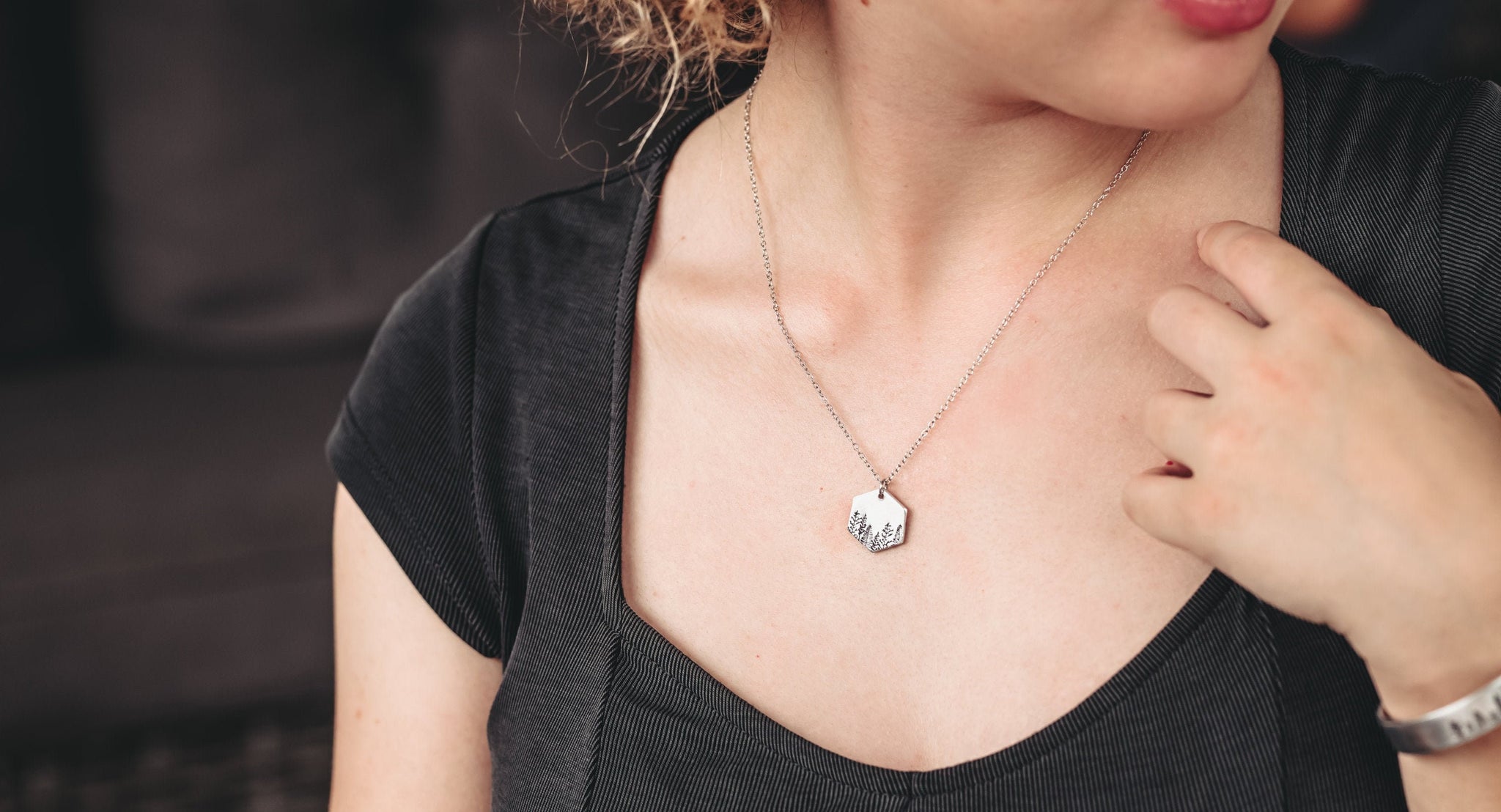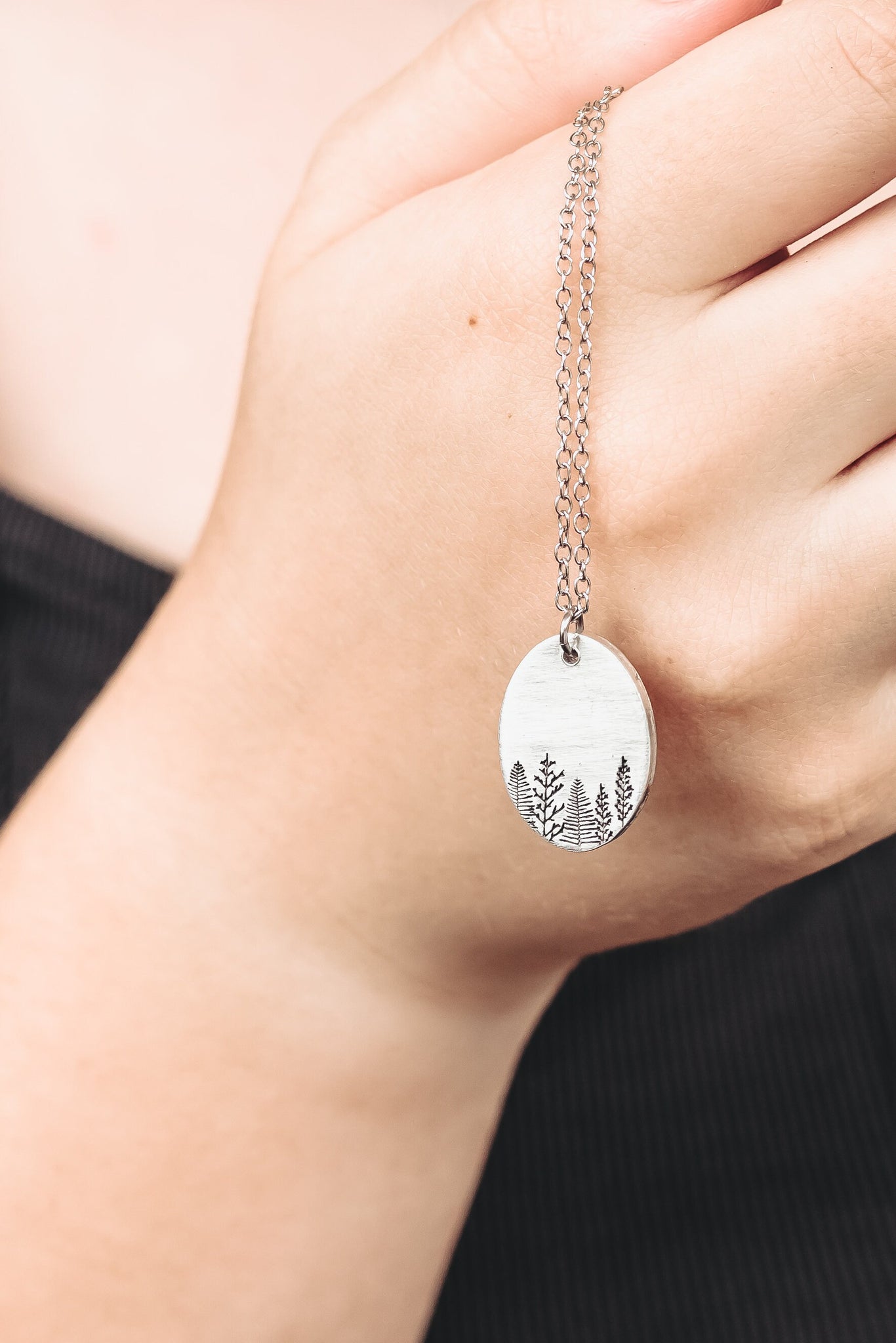 This hand stamped necklace features a forest of beautiful trees and makes a great gift.