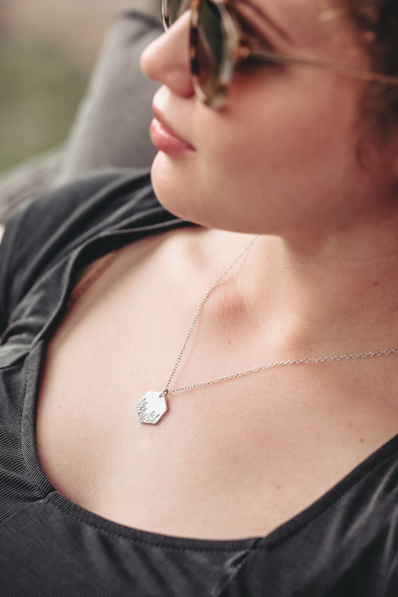 Select necklace length and pendant from drop down menu. The tiny oval and tiny hexagon do not include text, only the tree design.