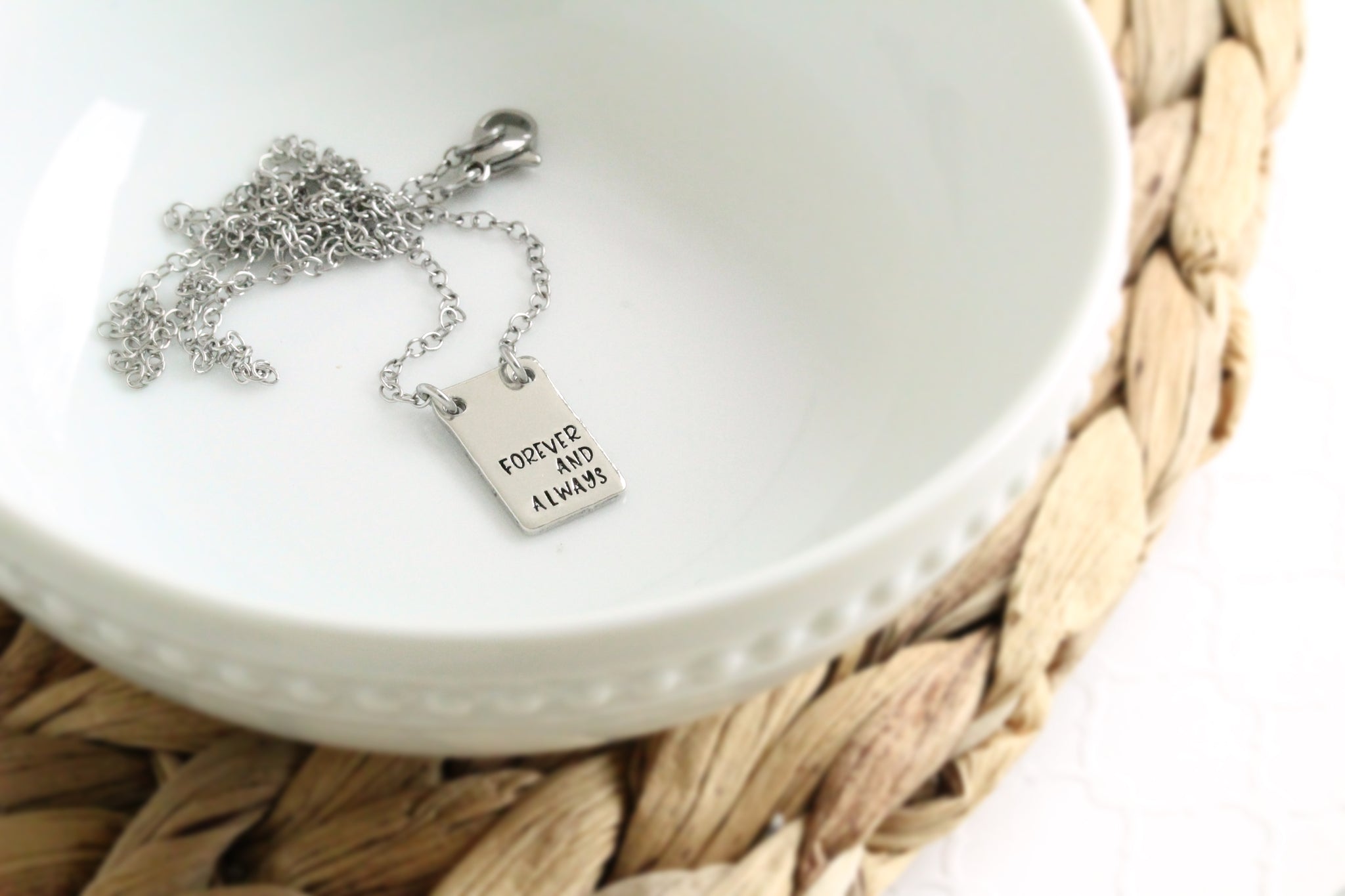 These are not machine engraved; instead, each letter is lined up one-by-one and hammered into the metal - all by hand. For this reason, there may be slight differences in the spacing, depth, and alignment. These are characteristics that add to the charm of being handmade; do not expect machine perfection. Please be aware of turn-around and shipping times. Rush options available at checkout.