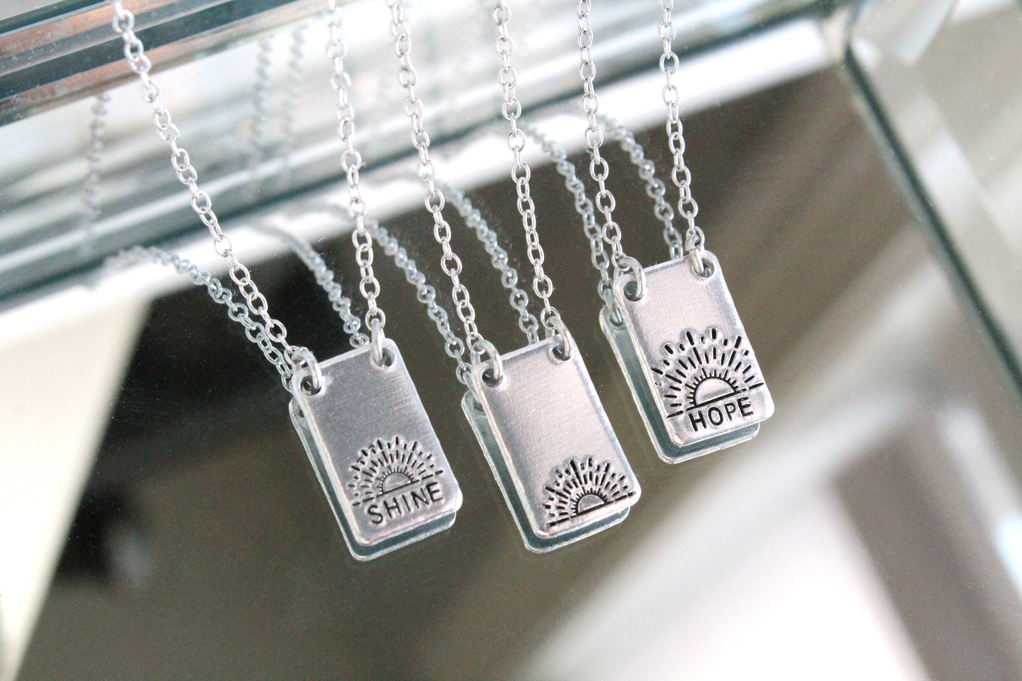 These are not machine engraved; instead, each letter is lined up one-by-one and hammered into the metal - all by hand. For this reason, there may be slight differences in the spacing, depth, and alignment. These are characteristics that add to the charm of being handmade; do not expect machine perfection. Please be aware of turn-around and shipping times. Rush options available at checkout.